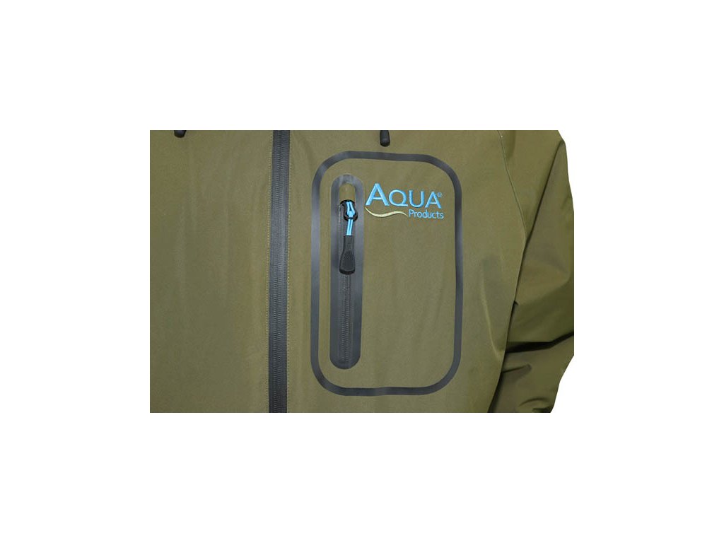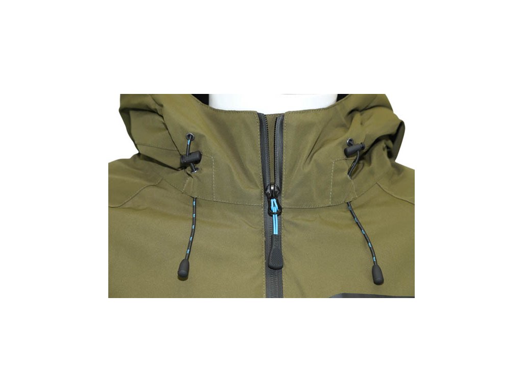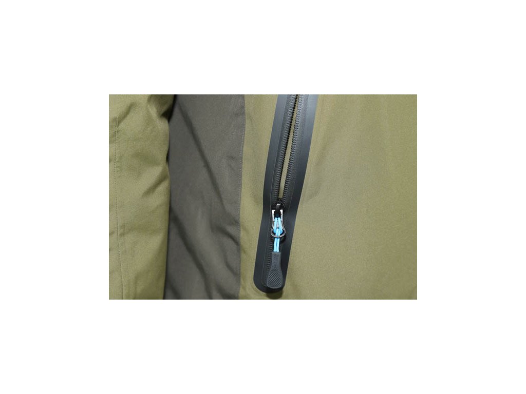 Bunda F12 Thermal Jacket se může dále pochlubit voděodolností 10000 mm vodního sloupce a paropropustností 5000 mm. Spolu s plně podlepenými švy vám zaručuje maximální pohodlí u vody i ve špatném počasí a zároveň předchází přehřátí při větší fyzické aktivitě. Bunda je vybavena třemi kapsami – jednou na hrudi a dvěma v dolní části na ruce. Všechny jsou podlepené a mají voděodolné zipy, což zaručuje maximální ochranu věcí uvnitř. Dále se může bunda pochlubit skvělou kapucí, která vás ochrání při nepříznivém počasí, ale neomezuje vám nijak výhled.