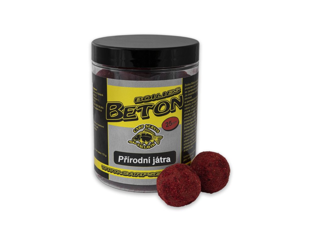Speciální produkt pro extrémní rybolov, se zaměřením na velké úlovky. Je charakterizován vyšší pevností a zpomaleným rozpadem. Tyto aspekty přinášejí nižší počet záběrů, ale zvyšují hmotnostní průměr ulovených ryb. Poslouží především tam, kde je velké množství drobných ryb, které potřebujete odradit, aby se zvýšila šance na trofejní úlovek. Boilies Beton je ve dvou fázích zatraktivněn tak, aby cílené ryby v bezprostřední vzdálenosti vyprovokoval k záběru. Pro ideální výsledek, který očekáváte, doporučujeme střídmé dokrmování k tomuto druhu boilies. Výrobce: CSVDoplňkové parametry