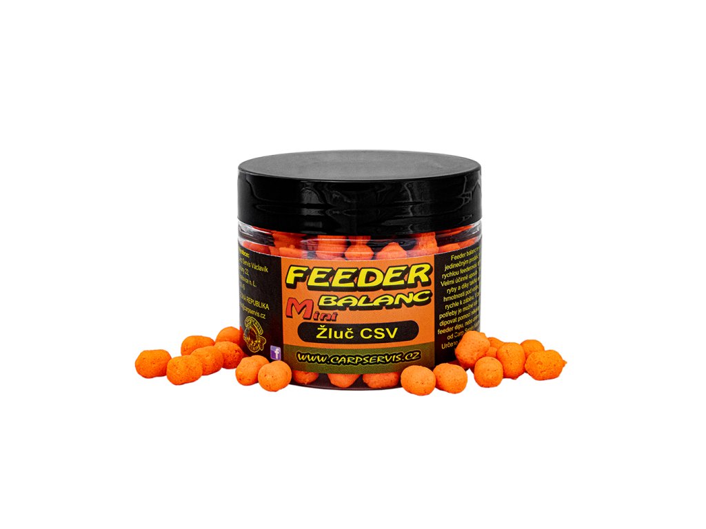 Feeder balanc je nadlehčená (neutrální - vyvážená) silně aromatická nástraha ve výrazných barvách. Je určená pro feeder nebo lehkou kaprařinu. Nutno nastražit pomocí vlasové metody nebo silikonových kroužků. Feeder balanc je jedinečným produktem pro rychlou feederovou techniku. Velmi účinně upoutá přítomné ryby a díky takřka nulové hmotnosti pod vodou dojde rychle k záběru. V případě potřeby je možné tuto nástrahu dipovat pomocí několika kapek feeder dipu nebo aroma speciálu od Carp Servis Václavík. - Rozměr nástrahy: 6x8 mm - oranžová - Balení: 45 g Výrobce: CSVDoplňkové parametry