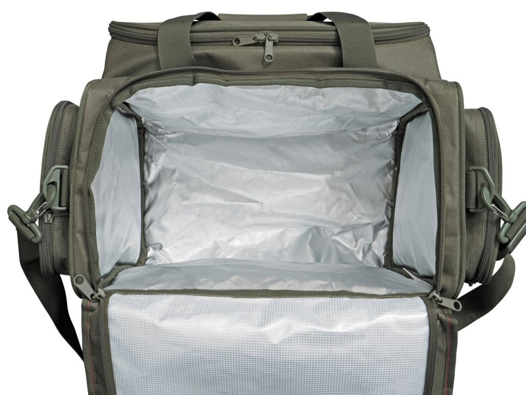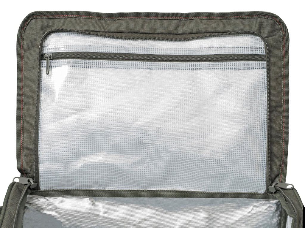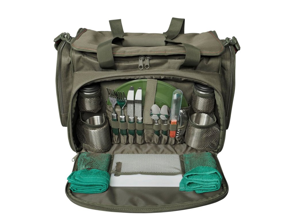 Táto taška je ideálna pre jedného alebo dvoch rybárov, má hlavnú izolovanú priehradku s utierateľným povrchom, sadu príborov, tanierov atď. a dve priestranné bočné vrecká, do ktorých sa zmestia stredné a malé puzdrá rady Defender.