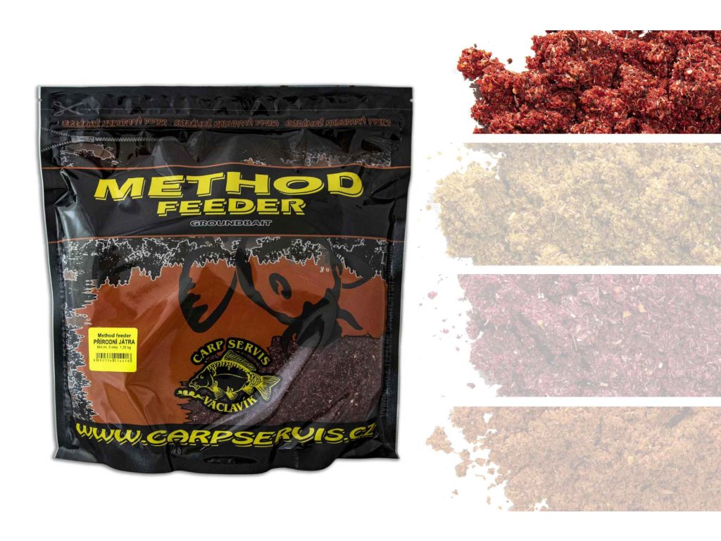 Method feeder je speciálně navlhčená vnadící směs k lovu kaprovitých ryb. Je složena z širokého spektra tepelně upravených surovin, které jsou zárukou vysoké atraktivity. Dále obsahuje aromatické látky s ověřenou účinností a velmi přesvědčivá ochucovadla na přírodním základu. Tuto směs lze snadno lisovat do method feederových či tvarovat do klasických krmítek. Lze touto směsí vnadit i pomocí samostatných koulí. A to ručně nebo prakem. Výrobce: CSV VideoDoplňkové parametry