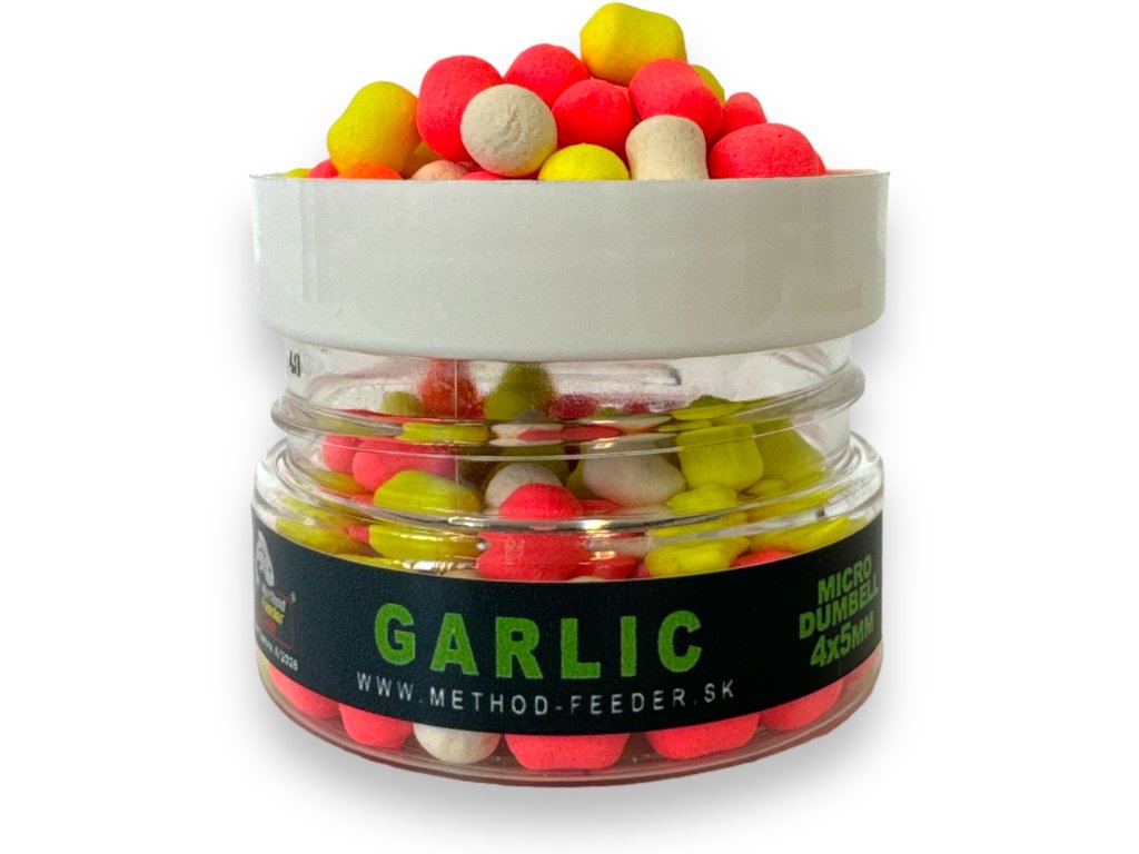 Micro Dumbell je dokonale navoněná nástraha. Přinášíme ji v pěti osvědčených příchutích, a to ananas, jahoda, česnek, krill a kořeněné maso.