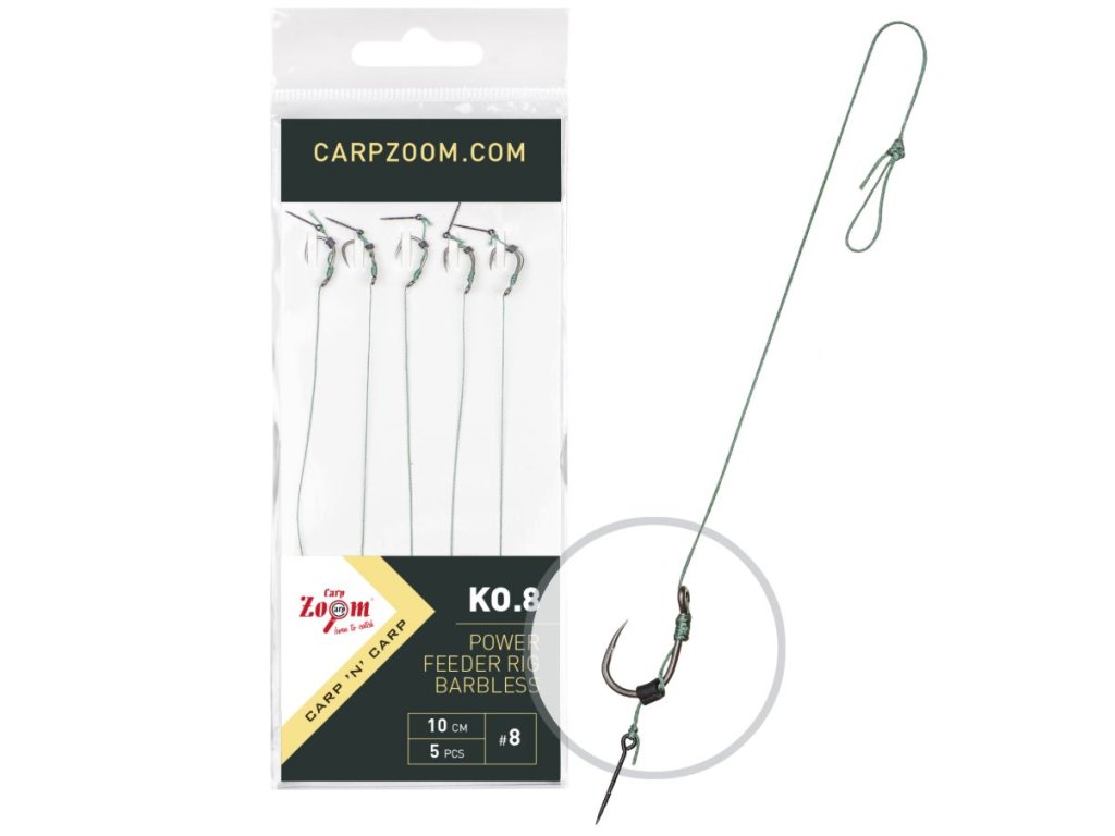 Power feeder návazec je perfektní volba pro lov na Method Feeder, ale je vhodný i pro běžný lov na těžko. - Balení: 5 ks - Velikost háčku: 8 - Délka návazce: 10 cm - Materiál: pletená šňůra průměr 0,18 mm - Velikost trnu: 10 mm Výrobce: Carp ZoomDoplňkové parametry