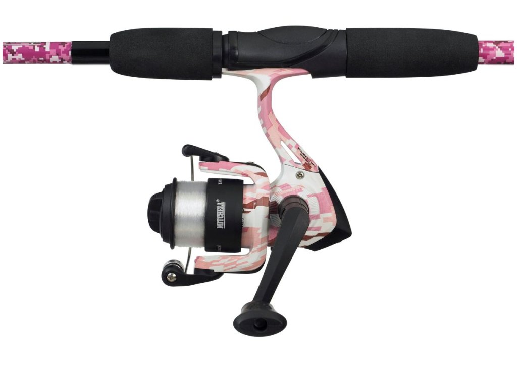 Prívlačový prút s navijákom FD Mitchell Tanager Pink Camo II Spin 2,10m 7-20g