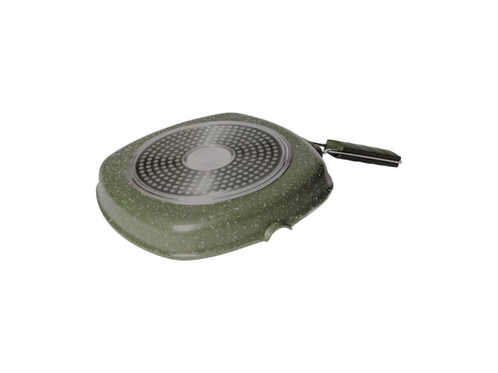 Pánev umožňuje vařit jídlo zdravěji díky sběrným kanálům pro odvod tuku. Základna pánve usnadňuje rovnoměrné rozložení tepla a speciální mramorovaný povlak zabraňuje přichytávání jídla, což umožňuje snadné čištění po vaření. Pánev má také skládací rukojeť pro snadnou přepravu.