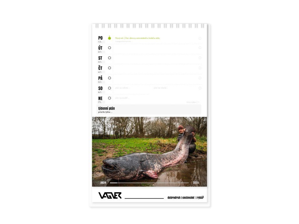 Naplánujte si své rybaření s Jakubem Vágnerem. Tento stolní kalendář A5 nabízí pohled na trofejní sumce a nejlepší sumcové vybavení v akci. Ať už preferujete lov na vábničky, trhačku nebo bellyboat, tento kalendář vás bude inspirovat po celý rok. Sumcařina v tom nejlepším podání přímo na vašem stole, kde nesmí chybět ani vaše pruty na sumce.